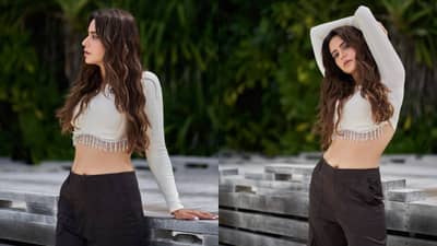 आमनाने या फोटोमध्ये पांढऱ्या रंगाचा क्रॉप टॉप आणि राखाडी रंगाची पॅन्ट घातली आहे. ज्यामध्ये ती खूप सुंदर दिसत आहे.