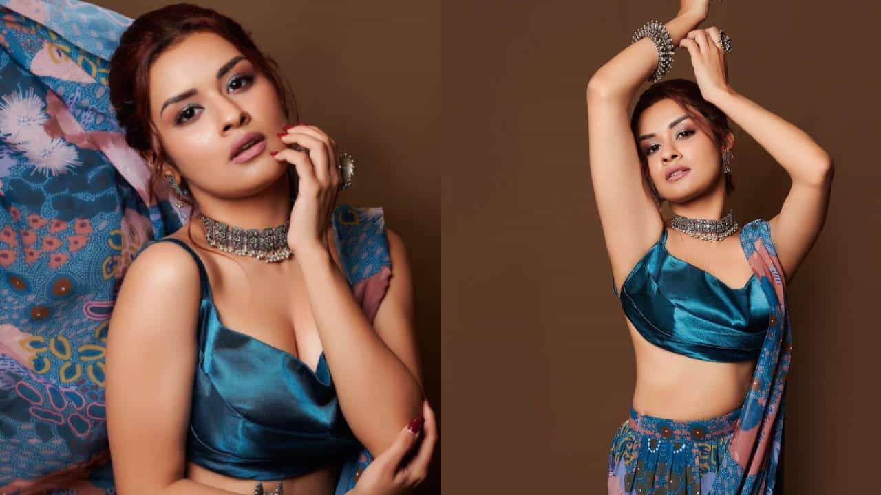 तिने या फोटोमध्ये निळ्या रंगाची साडी घातली आहे. साडीमध्ये ती खूप सुंदर दिसत आहे.