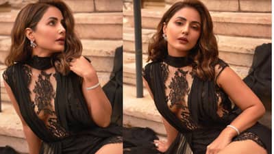 या फोटोमध्ये हीनाने ब्लॅक रंगाचे ट्रान्सफरंट आऊट्फिटीस घेतले आहेत. या ड्रेसमध्ये हीना अतिशय अप्रतिम दिसत आहे. एका इटालियन डिझायनरने डिझाइन केलेल्या अतिशय स्टाइलिश पोशाखात दिसत आहे.