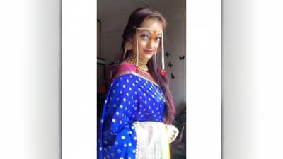 गृहमुख पूजेला मानसीनं निळ्या रंगाची साडी परिधान केली होती. या लूकमध्ये ती कमालीची सुंदर दिसत आहे.