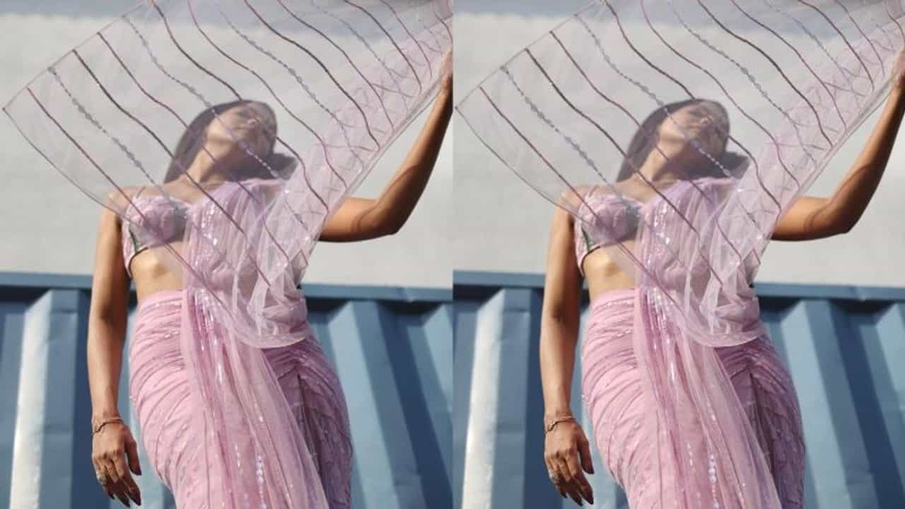 या गुलाबी साडीत पूजा कमालीची सुंदर दिसत आहे.