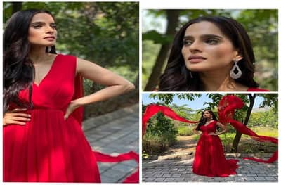 तिने एका ब्रॅन्डसाठी हा फोटोशूट केला आहे. यामध्ये तिनं लाल रंगाचा गाउन परिधान केला आहे.