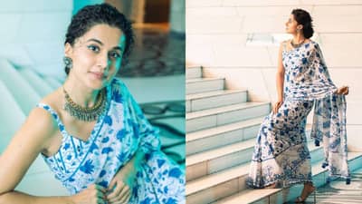 सोशल मीडियावर पोस्ट केलेल्या फोटोंमध्ये तापसीच्या लूकबद्दल बोलायचे झाले तरतिने प्रिंटेड साडीत दिसत आहे. तिचा लूक पूर्ण करण्यासाठी तिने गळ्यात नेकलेस, कानातले, न्यूड मेकअप केला आहेत