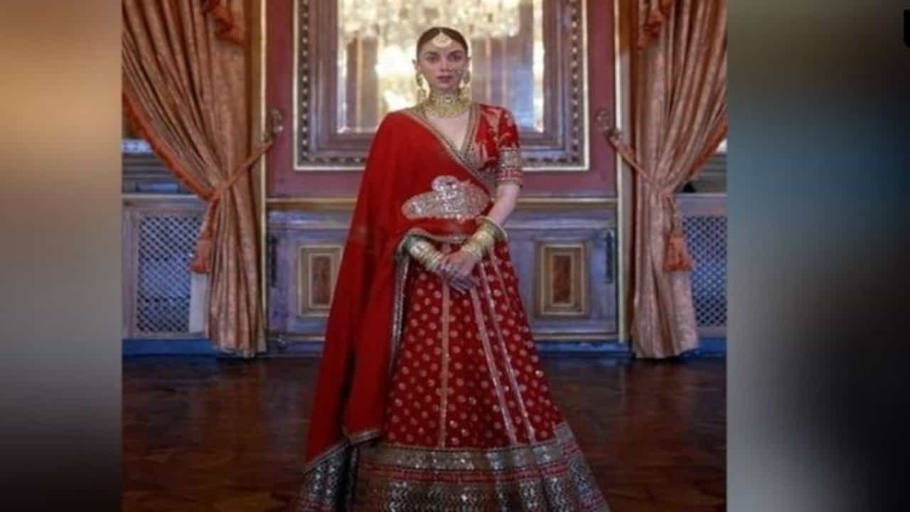 या लाल रंगाच्या ब्रायडल लेहेंग्यात अदिती कमालीची सुंदर दिसतेय.