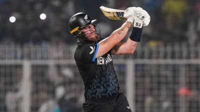 टी20 वर्ल्ड कप 2026 मध्ये सर्वात जास्त धावा करण्यामध्ये फिन ऐलन आता तिसऱ्या नंबरवर आहे. त्याने या एडिशनच्या 7 डावात 57.80 च्या सरासरीने 289 धावा केल्या आहेत. या लिस्टमध्ये पाकिस्तानचा साहिबजादा फरहान 383 धावांसह सर्वात पुढे आहे. फिन ऐलनची अजून एक इनिंग बाकी आहे. फायनलमध्ये जेव्हा तो फलंदाजी करेल. (PHOTO CREDIT- PTI)