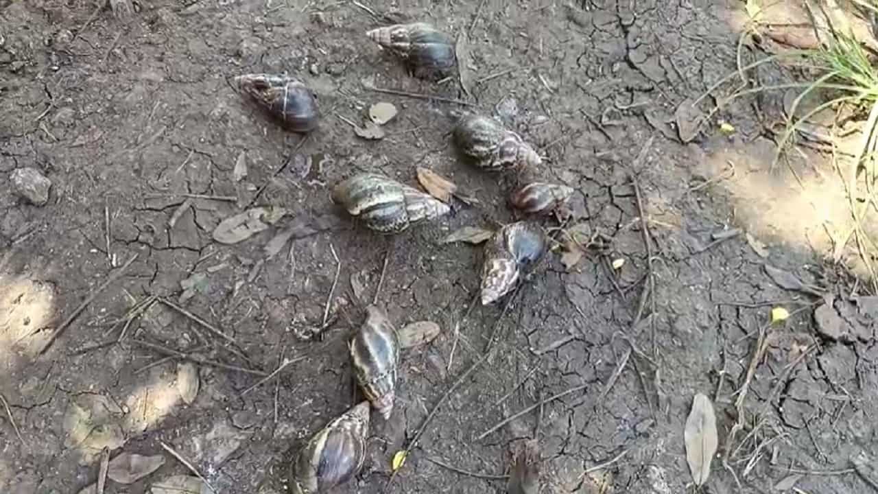 खानापूर परिसरातल्या शेतीमध्ये भल्यामोठ्या गोगलगायी सर्वत्र सोयाबीन, भुईमूग, घेवडा, झेंडू, भात पिकांमध्ये येऊन रात्रीच्या वेळी पिकांची नासाडी करीत असल्यानं शेतकरी मेटाकुटीला आला आहे.