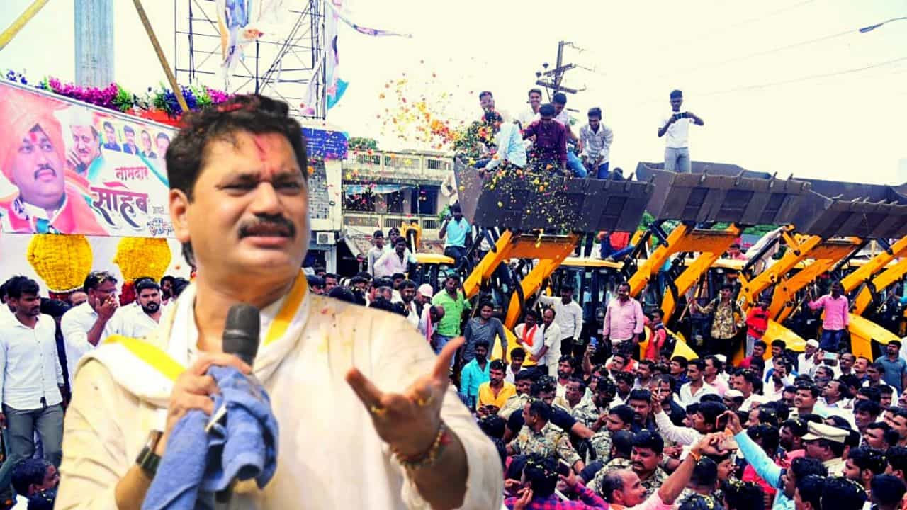 कृषीमंत्री धनंजय मुंडे यांचे जंगी स्वागत, 3o फूट हार आणि 40 जेसीबी द्वारे पुष्पवृष्टी