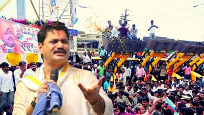 मुंडे यांच्या गाडीवर 40 जेसीबी द्वारे पुषपवृष्टी करण्यात आली. धनंजय मुंडे यांना कृषी खाते मिळाले आहे.