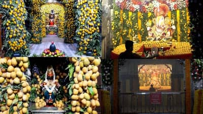 अक्षय्य तृतीयाच्या मुहूर्तावर पुणेकरांचे लाडके दैवत असलेल्या दगडूशेठ गणपतीला हापूस आंब्याची आरास करण्यात आली. दरवर्षी ही आरास मोठ्या प्रमाणात केली जाते. यंदा दगडूशेठ गणपतीला 1,111 हापूस आंब्याची आरास करण्यात आली आहे.