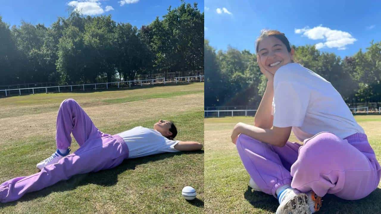 दुसऱ्या एका छायाचित्रात अनुष्का शर्मा जमिनीवर पडून सूर्याचा आनंद लुटताना दिसत आहे. तसेच त्याच्या शेजारी एक क्रिकेट बॉल ठेवला आहे. यावेळी अनुष्का शर्माने पर्पल कलरचा लोअर आणि व्हाईट कलरचा टी-शर्ट कॅरी केला आहे. यासोबतच त्याने सरावासाठी पांढऱ्या रंगाचे स्नीकर्सही घेतले आहेत.