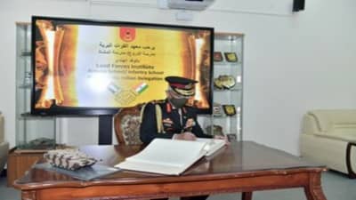 लष्करप्रमुख जनरल मनोज मुकूंद नरवणे यांनी 10 डिसेंबरला युएईच्या लँड फोर्सेस इन्स्टिट्यूटला भेट दिली आहे. (फोटो- ANI)
