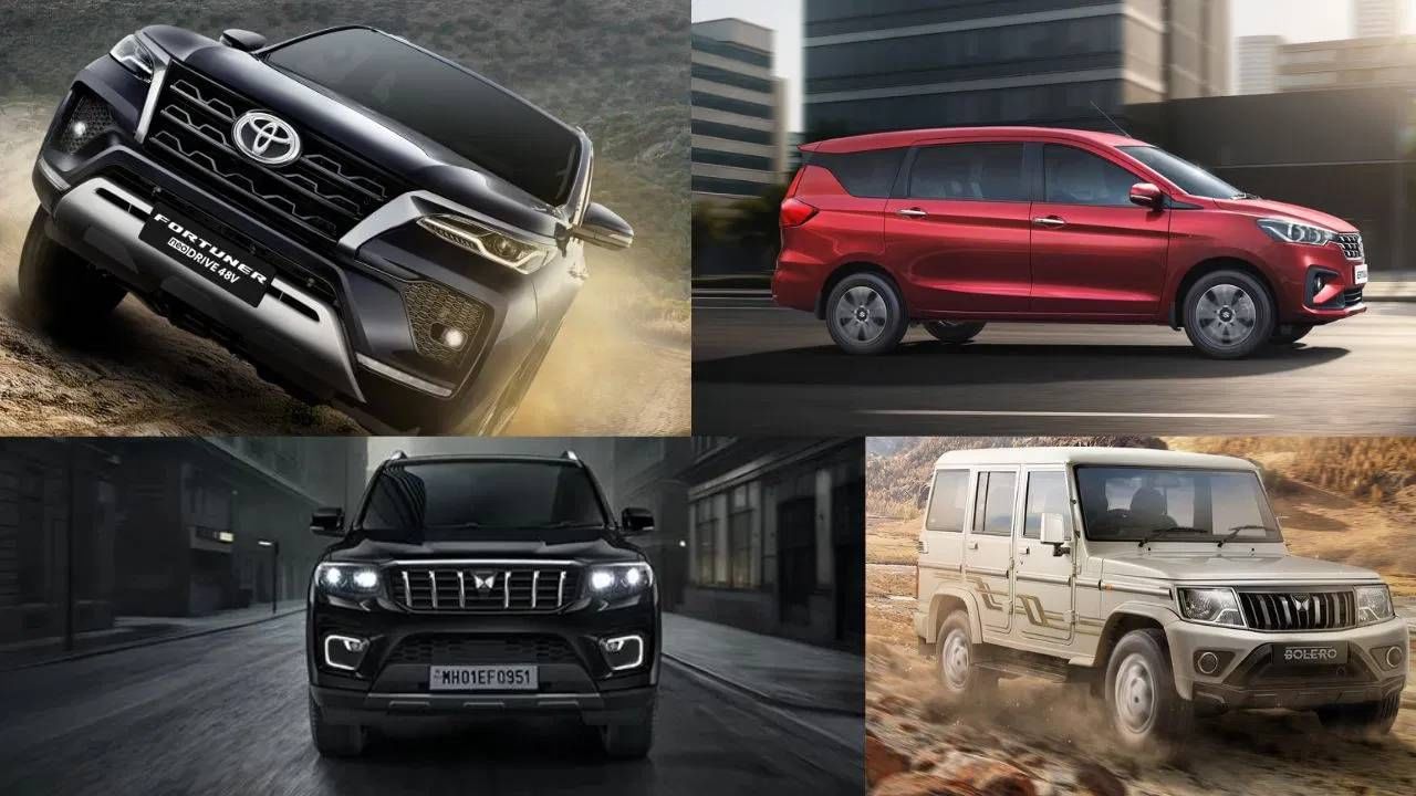 best selling 7 seater cars : टॉप 10 बेस्ट सेलिंग लिस्टमध्ये मारुती एर्टिगा, महिंद्रा स्कॉर्पियो, बोलेरो, टोयोटा इनोवा, किया कैरेंस, टाटा सफारी आणि टोयोटा फॉर्च्यूनर या कार्स आहेत. या कार स्पेस, कम्फर्ट आणि परफॉर्मेंसमुळे कुटुंब आणि लॉन्ग ड्राइवसाठी पहिली पसंत बनल्या आहेत.