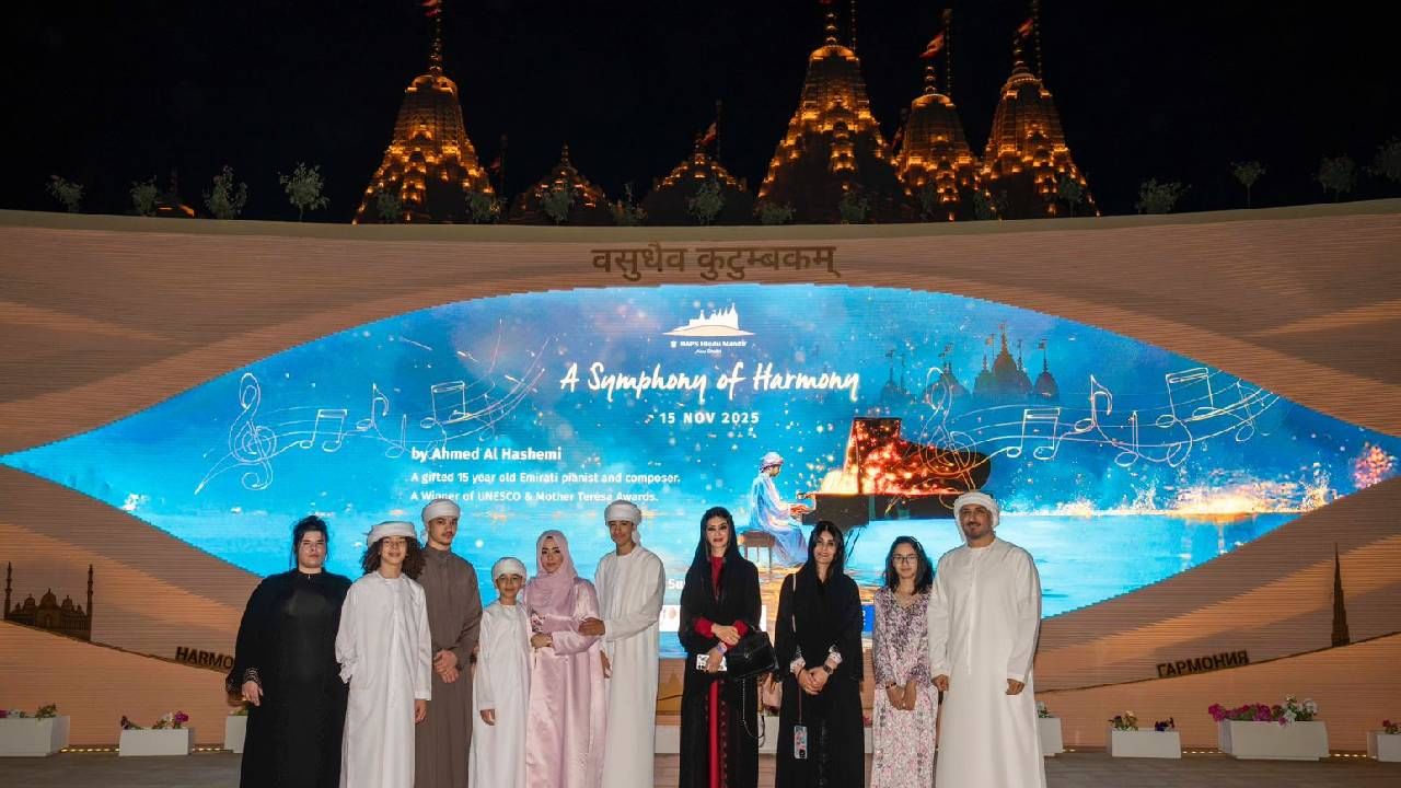 बीएपीएस हिंदू मंदिर अबू धाबीने 'अ सिम्फनी ऑफ हार्मनी' कार्यक्रम आयोजित केला, ज्यात दिव्यांग व्यक्ती, समावेश आणि मानवी मूल्यांचा उत्सव साजरा करण्यात आला. 15 वर्षीय पियानोवादक अहमद अल हाशिमीचे मनमोहक सादरीकरण हे मुख्य आकर्षण ठरले.