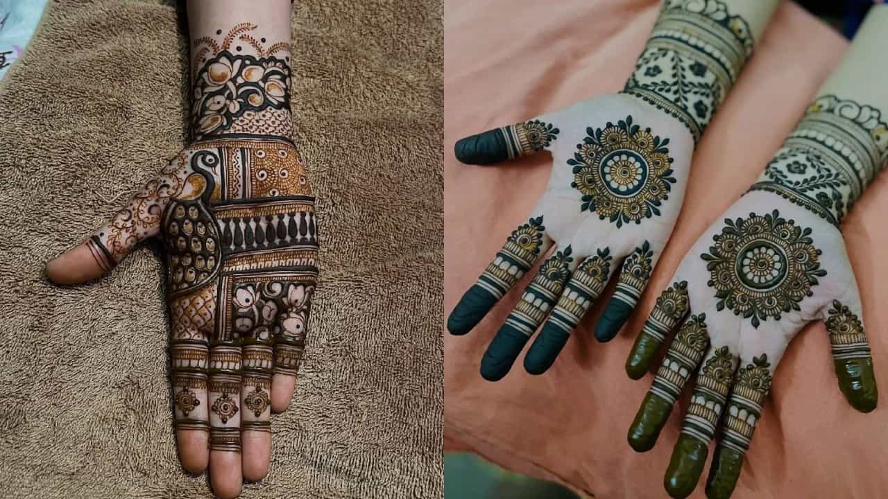 जर तुम्हाला भरलेली मेहंदी नको असेल, तर हा दोन्ही हातांवर गोल वर्तुळ बनवून आजूबाजूला साध्या फूल आणि पानांची नक्षी काढू शकता. तसेच मनगटावरही साधी डिझाईन काढून तुम्ही ती आकर्षक बनवू शकता.