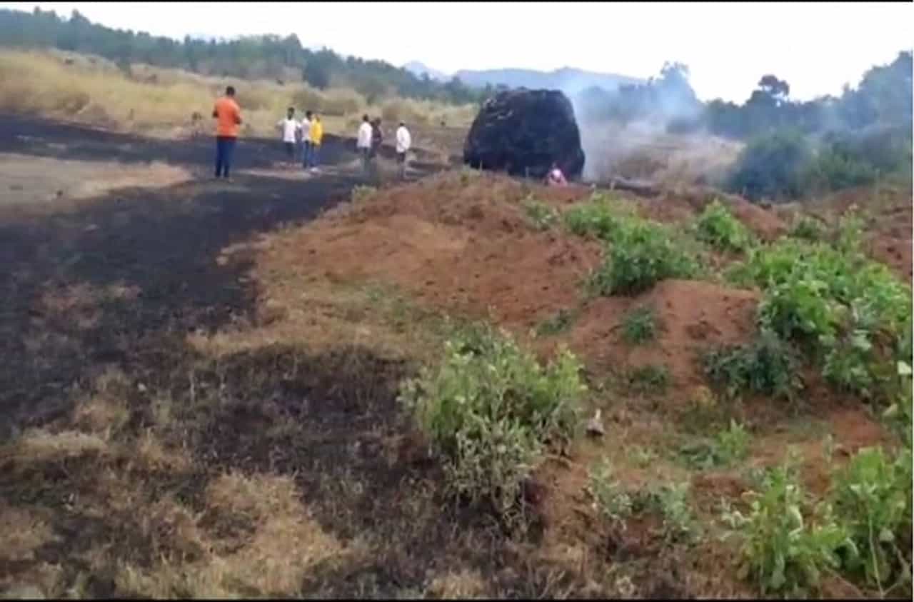 सदर घटना तालुक्यातील वापे ग्रामपंचायत परिसरात गावाबाहेर असलेल्या शेतकऱ्याच्या शेतात घडली असून आगीचे कारण अद्याप स्पष्ट झालेले नाही.