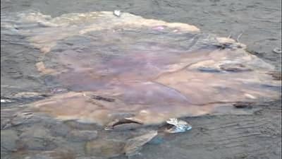 आठ दिवसांपूर्वी याच ठिकाणी असाच एक महाकाय जेलिफिश (Malvan jelly fish) रापणीच्या जाळ्यात सापडला होता.