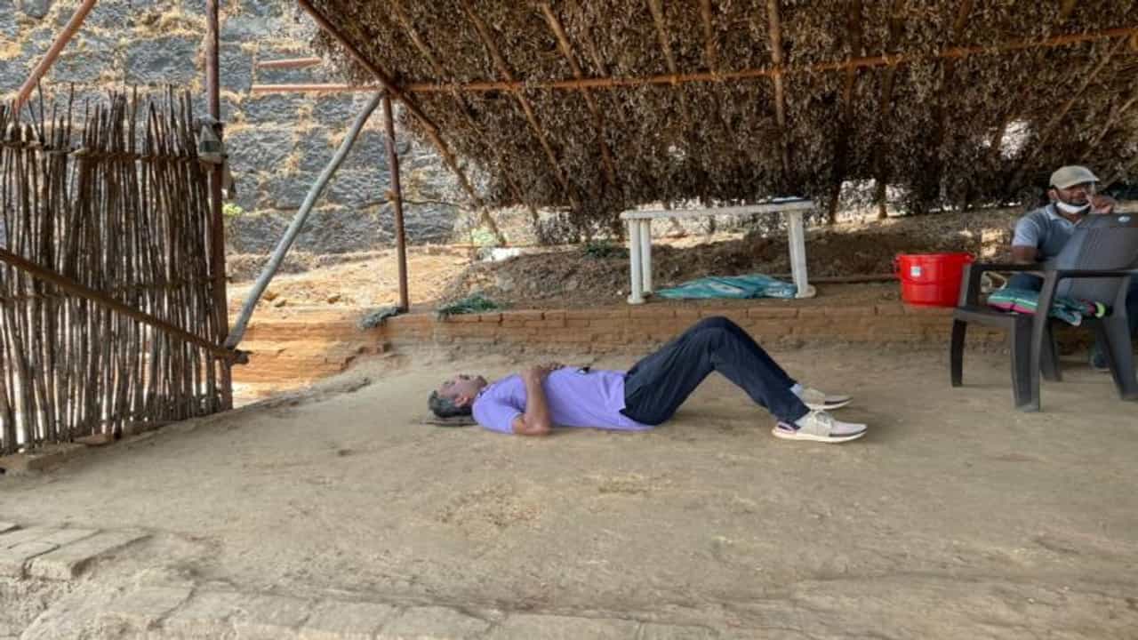 एक राजघराण्याचा माणूस, छत्रपतींचा वंशज जेव्हा रायगडाच्या एका झोपडीत विसावा घेतो (Chhtrapati Sambhajiraje taking rest in hut at Raigad).