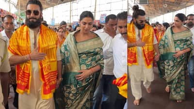 यावेळी दीपिका पादुकोण ही बनारसी साडीमध्ये पोहोचली. रणवीर सिंह आणि दीपिका पादुकोण या दोघांचाही लूक जबरदस्त दिसत आहे. विशेष म्हणजे चप्पल न घालता दीपिका मंदिरात पोहोचली.