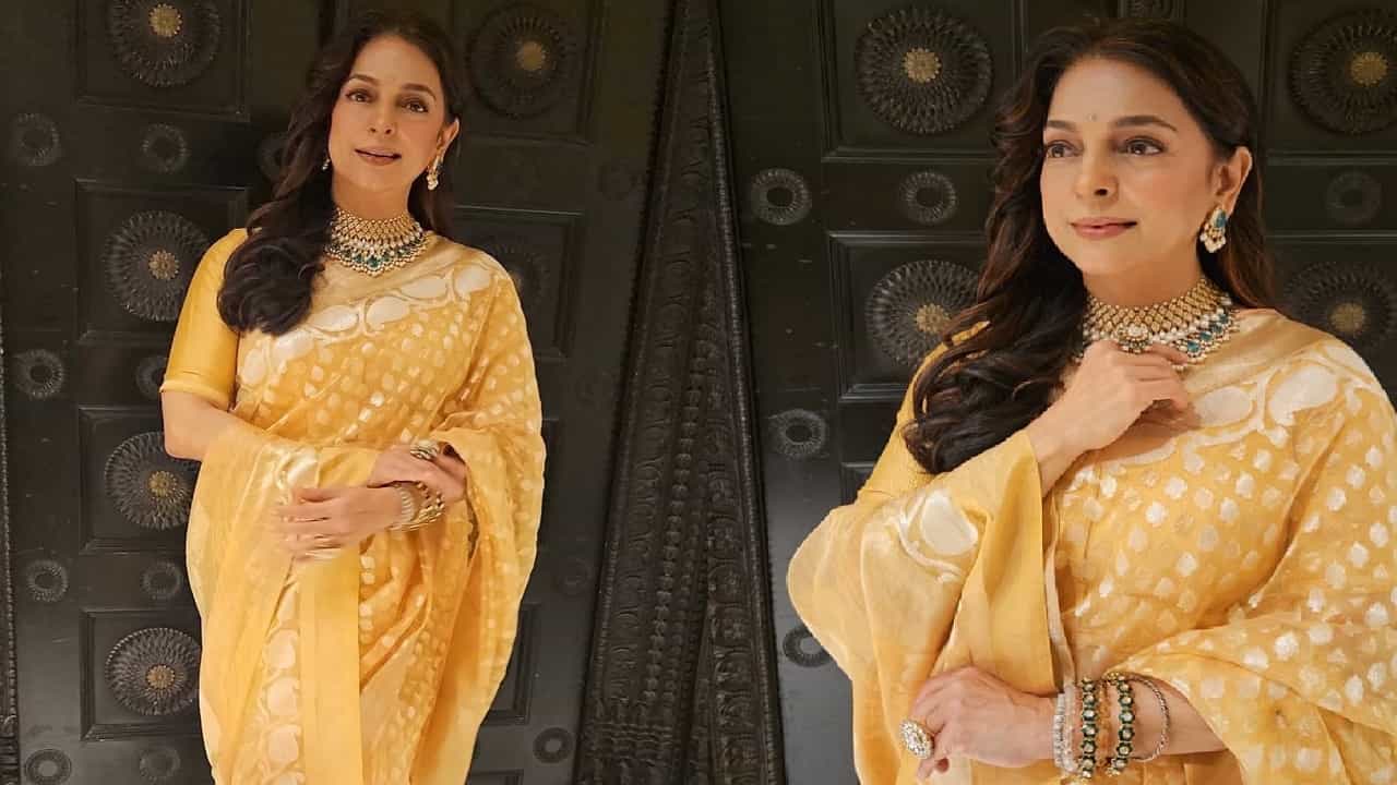 जुही चावला हिचा पिवळ्या साडीत सिंपल लूक… साठीच्या उंबरठ्यात तरीही प्रचंड सुंदर
