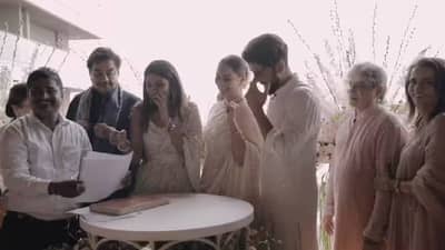 सोनाक्षी आणि झहीर इक्बाल यांनी सर्वात अगोदर रजिस्टर मॅरेज केले. यावेळी दोन्ही कुटुंबातील सदस्य उपस्थित दिसत आहेत. मॅरेज सर्टिफिकेटवर अंगठ्याचा ठसा देताना सोनाक्षी दिसत आहे.