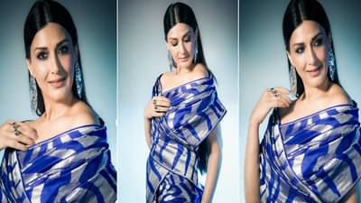सिल्व्हर आणि निळ्या रंगाची साडी हटके अंदाजात अभिनेत्रीने नेसली आहे. साडीत फोटोशूट करत अभिनेत्रीने क्लासी फोटो सोशल मीडियावर पोस्ट केले आहे.