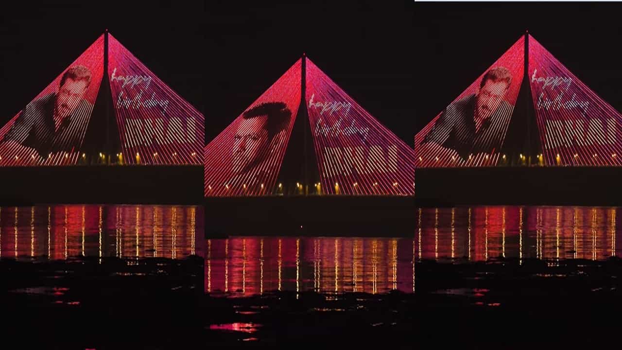 सलमान खानचे फोटो मुंबईच्या स्काईलाइनवर दिसत आहेत. मुंबई येथील स्काईलाइन सुंदरपणे प्रकाशित करण्यात आला होता, ज्यामध्ये सलमान खानच्या चित्रपटांमधील विविध लूक दाखवण्यात आले होते.