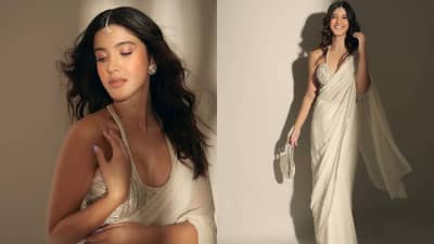 या फोटोंमध्ये शनाया कपूर पांढऱ्या साडीत जबरदस्त पोज देऊन चाहत्यांना वेड लावताना दिसत आहे.