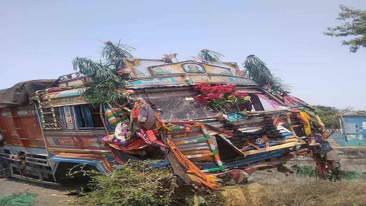 या अपघातात बस रस्त्याच्या कडेला गेली. त्यामुळं बसचे मोठे नुकसान झाले. बसही चांगलीच चेपकली. जखमींमध्ये दोन बालकांचा समावेश आहे.