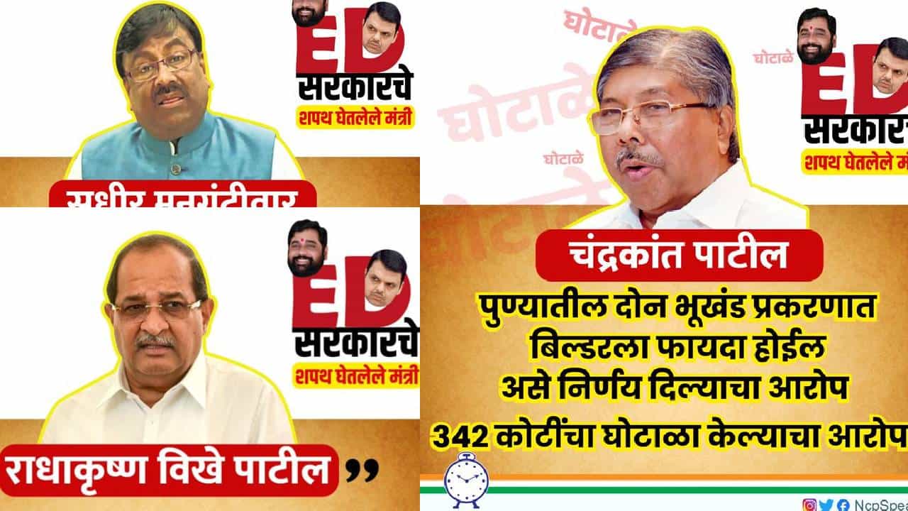 Cabinet Expansion : नव्या मंत्रिमंडळातील 18 पैकी 17 मंत्र्यांवर आरोप, राष्ट्रवादीकडून यादीच जाहीर, फोटोतून समजून घ्या