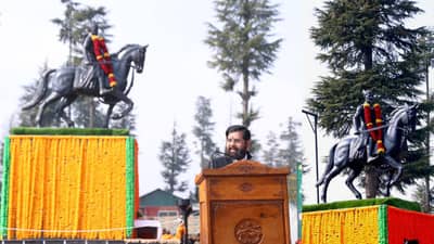 भाषण करताना मुख्यमंत्र्यांनी सगळ्यांचं लक्ष पुतळ्याकडे वेधलं आणि म्हणाले, "अश्वारुढ पुतळ्यावरील छत्रपती शिवाजी महाराज पाकिस्तानच्या दिशेने बघत आहेत. त्यांच्या हातात तलवार आहे. महाराज इथे असल्याने शत्रू इथे पाऊल ठेवण्यास धजावणार नाही. हा पुतळा पाहून दहशतवादीही काश्मीरमध्ये घुसखोरी करण्याची हिंमत करणार नाही".