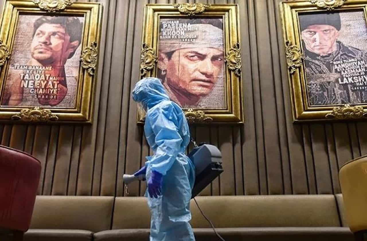 चित्रपटगृहातील प्रत्येक कोपऱ्यात निर्जंतुकीकरण केले जात आहे.