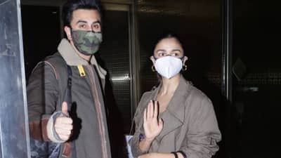आलिया आणि रणबीर कपूर एअरपोर्टवर मॅचिंग आउटफिट्समध्ये दिसले.