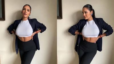 या फोटोंमध्ये ईशा गुप्ता व्हाईट टॉप, ब्लॅक ब्लेझर आणि ब्लॅक पँटमध्ये खूपच ग्लॅमरस दिसत आहे. फोटोंमध्ये, ईशा गुप्ता तिच्या कानात झुमके, हातात अंगठी परिधान केली आहे आणि केसांची पोनीटेल बांधलेली दिसत आहे.
