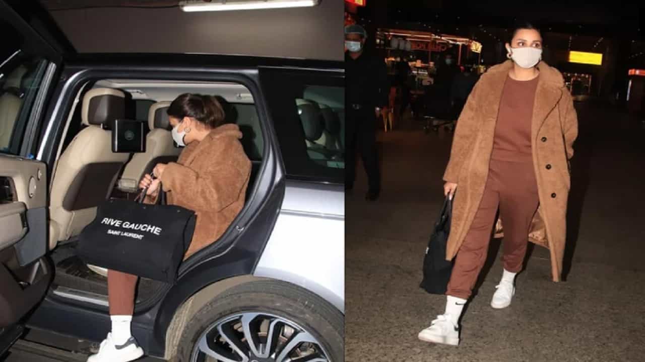 विमानतळावर परिणीतीने ट्रेंडी ब्राउन शेडचा विंटर ड्रेस घातला होता. फुल स्लीव्हज, रिब्ड हेमलाइन, बॉडी स्किमिंग फिट आणि क्रॉप्ड लेंथ.