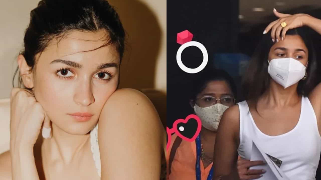 यावेळी एअरपोर्टवर आलियाच्या अंगठीने सर्वांचं लक्ष वेधून घेतलं. आलियाने ही अंगठी तिच्या डाव्या हाताच्या अनामिकेत घातली आहे.