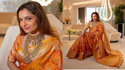 भगव्या रंगाच्या साडीत अभिनेत्री प्रचंड सुंदर दिसत आहे. अंकिता कायम वेगवेगळ्या लूकमध्ये फोटो पोस्ट करत चाहत्यांच्या फॅशन गोल्स देत असते.