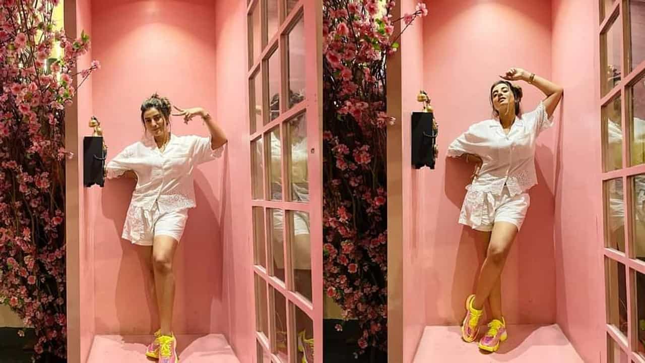 अक्षराने पांढऱ्या रंगाच्या शॉर्ट ड्रेसमध्ये फोटो शेअर केले आहेत. फोटोंमध्ये अक्षरा एका फोन बूथजवळ उभी राहून पोज देताना दिसत आहे.