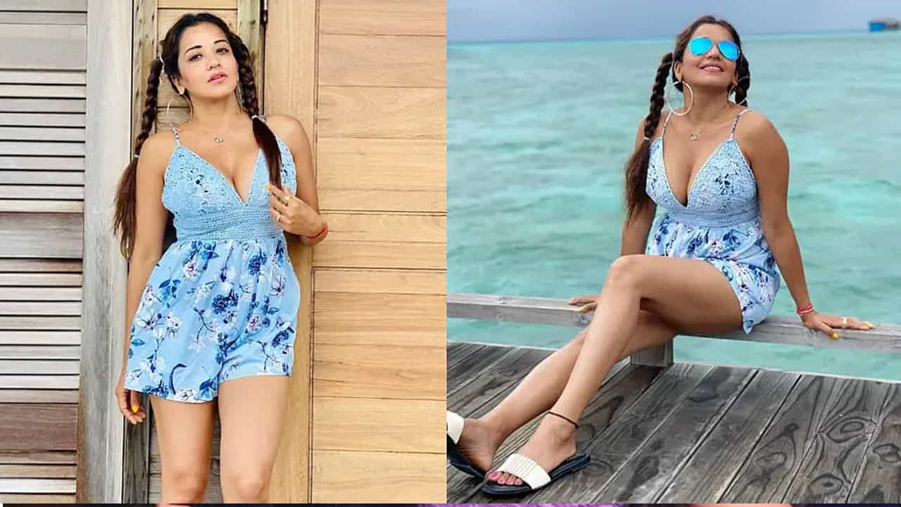 मोनालिसाने शॉर्ट ड्रेसमधील हॉट फोटो शेअर केले आहेत. या फोटोत तिने फिकट निळ्या रंगाचा फ्लोअर ड्रेस परिधान केला आहे. यासोबतच तिने दोन वेण्या बांधल्या आहेत आणि सनग्लासेस घातले आहेत.