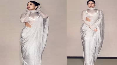 पांढऱ्या रंगाच्या ग्लॅमरस साडीमध्ये भूमी पेडणेकर हॉट आणि ग्लॅमरस दिसत आहे.