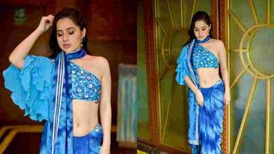 उर्फीने निळ्या रंगाच्या साडीतील फोटो शेअर केले आहेत. तिने साडीसोबत ऑफ शोल्डर ब्लाउज घातला आहे. यासह, पदर प्लेट्समध्ये न घेता त्याने एक ट्विस्ट दिला आहे.