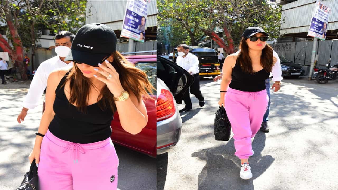 करिनाने या फोटोत काळ्या रंगाचा टॉप आणि गुलाबी रंगाची पॅन्ट घातलेली दिसतेय. डोळ्यावर गॉगल, हातात बॅग आणि डोक्यात टोपी असा तिचा लुक पहायला मिळाला.
