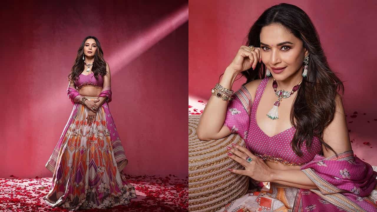 हटके लेहेंग्यामध्ये अभिनेत्रीचं सौंदर्य फुलून दिसत आहे.सोशल मीडियावर सध्या फक्त आणि फक्त माधुरी हिच्या नव्या लूकची चर्चा रंगली आहे.