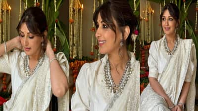 सोनाली बेंद्रे हिने इन्स्टाग्रामवर पांढऱ्या रंगाच्या ड्रेसमध्ये फोटो पोस्ट केले आहेत. गणेशोत्सवाच्या निमित्ताने अभिनेत्रीने खास लूक केला होता.