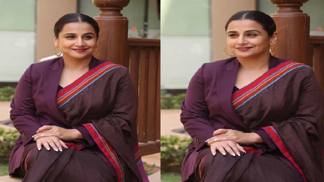 पर्पल रंगाची साडी आणि तिने त्यावर जॅकेट घातलेलं पहायला मिळालं. या लूकमध्ये विद्या अधिकच सुंदर दिसत होती.