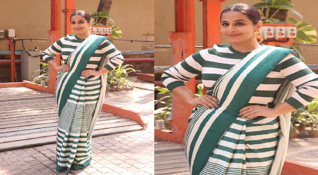 विद्याने ग्रीन कलरच्या झेब्रा लूकमधली साडी नेसली होती. या लूकमध्ये तिचं सौंदर्य अधिकच खुलून दिसत होतं.