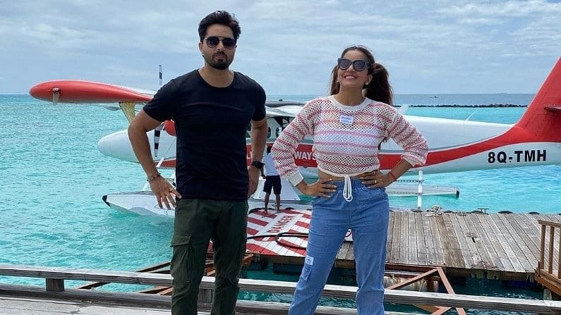 या फोटोंमध्ये मोनालिसा आणि विक्रांत विमानाच्या बाहेर पोज देताना दिसत आहेत. फोटो शेअर करताना तिनं लिहिलं - बाय बाय मालदीव. (‘Bye bye Maldives’, holiday is over, Bhojpuri queen Monalisa returns)