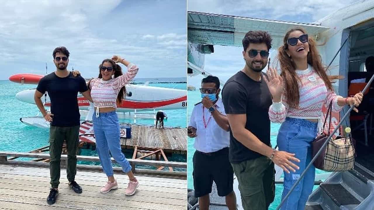 या फोटोंमध्ये मोनालिसा आणि विक्रांत विमानाच्या बाहेर पोज देताना दिसत आहेत. फोटो शेअर करताना तिनं लिहिलं - बाय बाय मालदीव. (‘Bye bye Maldives’, holiday is over, Bhojpuri queen Monalisa returns)