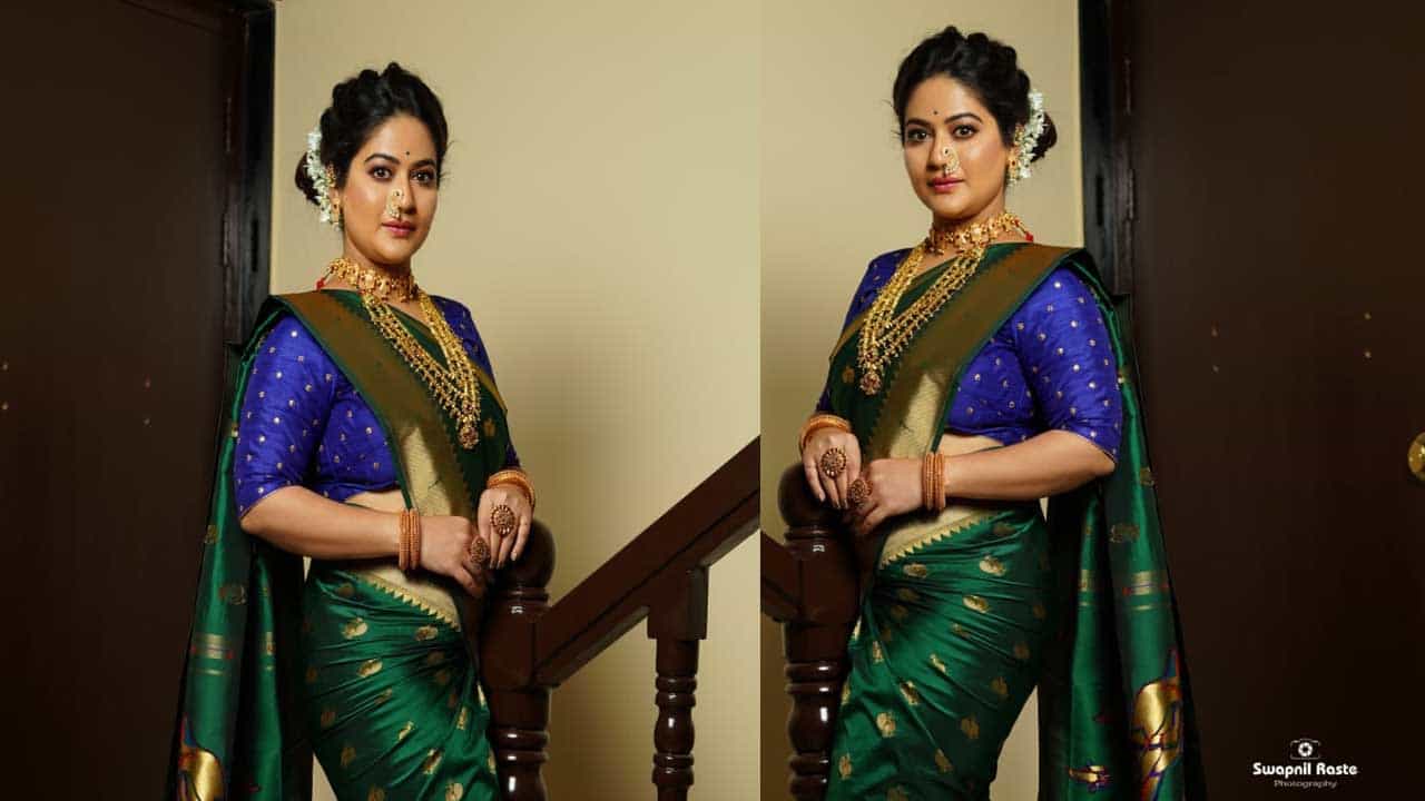 हिरवीकंच साडी, नक्त नथ आणि दागिन्यांच्या साजाने अभिनेत्रीचं सौंदर्य आणखीनच खुलून आलं आहे. पारंपारिक वेशात अभिनेत्री खूपच सुंदर दिसत आहे.