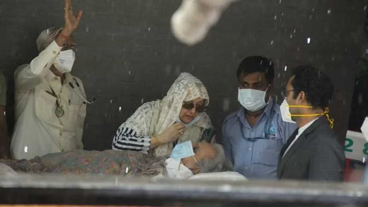 हॉस्पिटलमधून बाहेर पडतानाच्या या फोटोंमध्ये दिलीप कुमार डोळे मिटून खाली झोपलेले दिसत आहेत. तर, पत्नी सायरा बानो पती दिलीप कुमार यांचे चुंबन घेताना दिसल्या, तर कधी त्या काळजीत दिसल्या.
