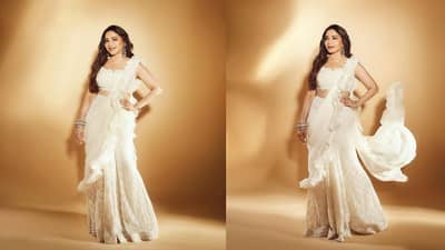 पण आता माधुरी हिने केलेला बोल्ड लूक तुम्ही रिसेप्शन किंवा कोणत्याही पार्टीसाठी फॉलो करू शकता. पाढंऱ्या साडीमध्ये माधुरी हिचं सौंदर्य फुललं आहे.